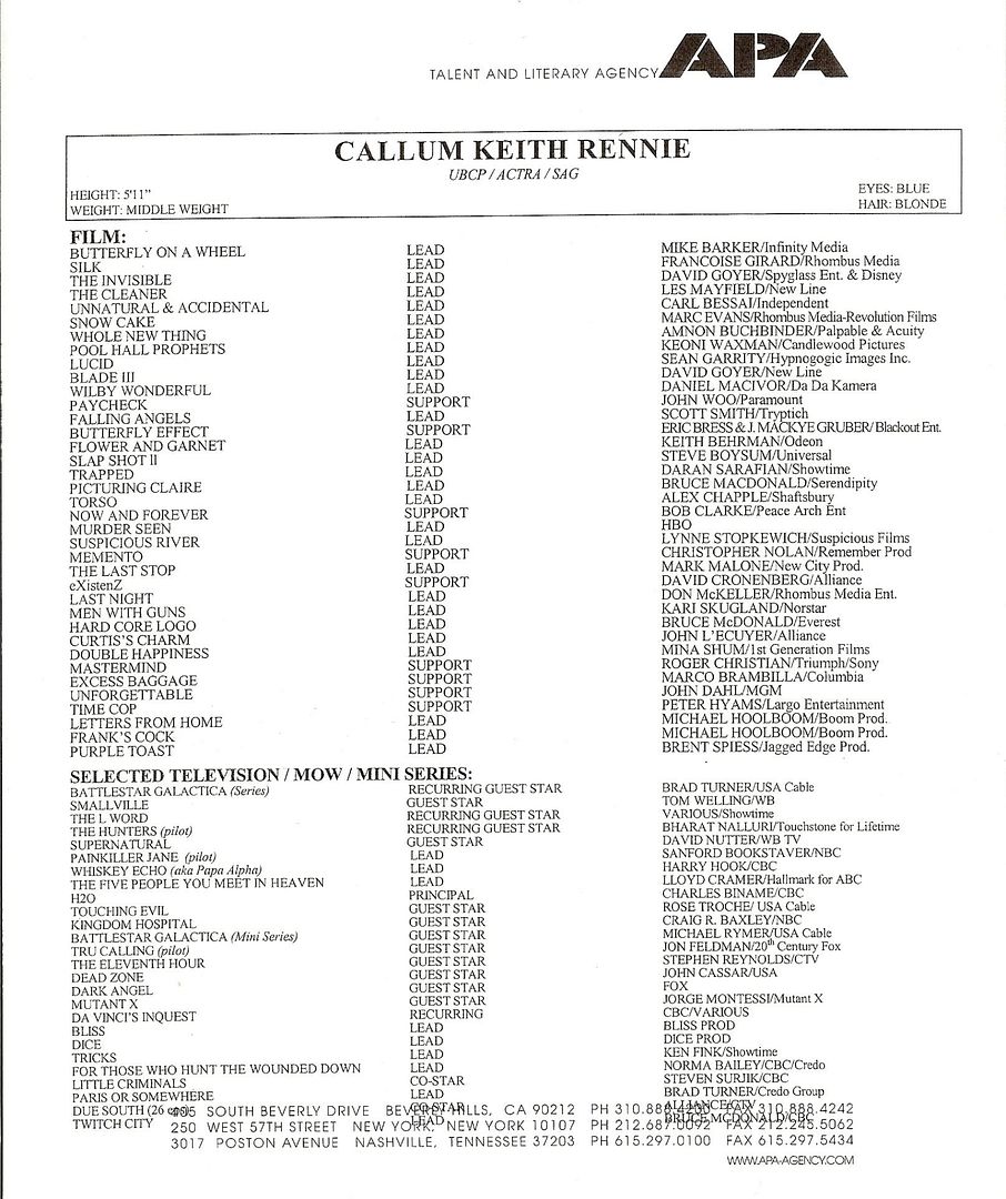 And well, I can go on with other Callum things. Not like his credits are a short list.